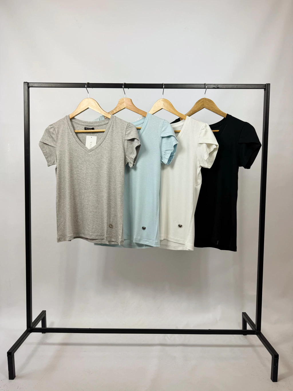 Remera de cuello en V con detalle en manga.
